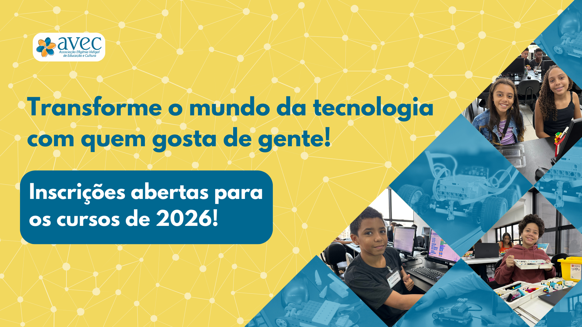 O processo de aprendizado pode ser divertido e agregar mais significado para os alunos. Acreditando nisso, a AVEC aplica o conceito da aprendizagem criativa para construir uma experiência de ensino diferenciada para os nossos jovens. [...]